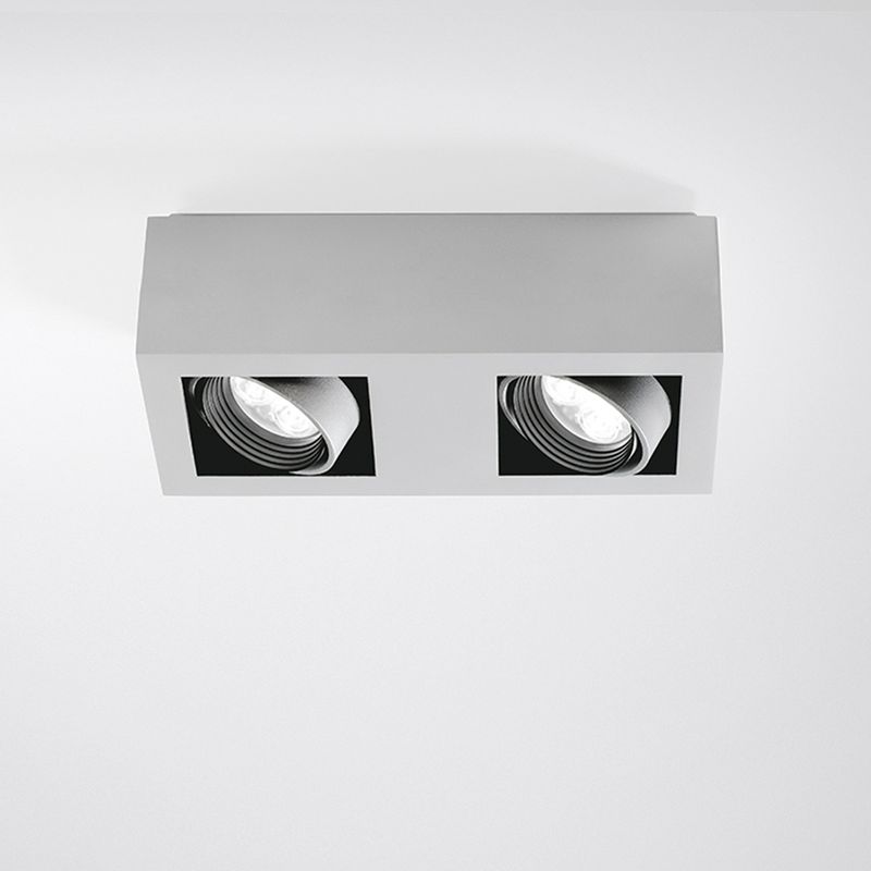 luminária aplicada orientável em alumínio. sistema óptico com lentes e dispositivo antiofuscamento na cor preta.