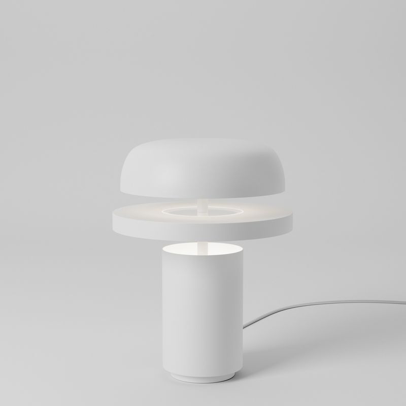 assinada por lia siqueira, a luminária de mesa bambolê combina diferentes formas geométricas unidas pela luz. propõe uma iluminação indireta e confortável, com módulo led embutido em sua base cilíndrica e luz rebatida no interior de sua cúpula. feita em alumínio e disponível em diversas cores, bambolê possui versões em dois tamanhos.