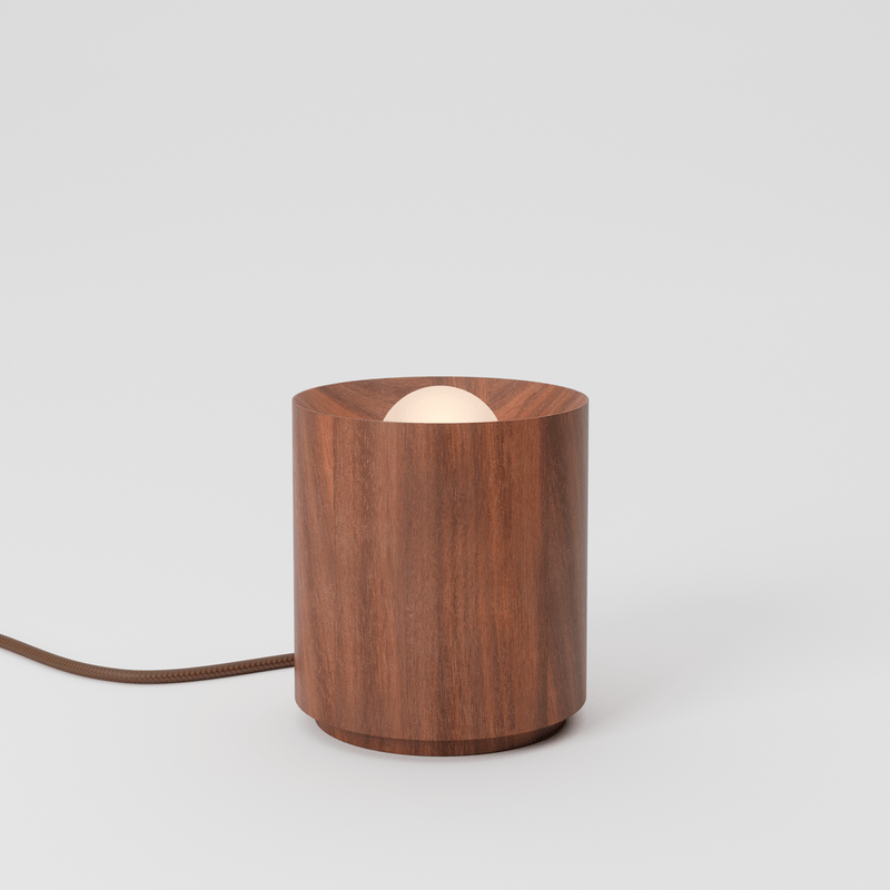 luminária de mesa em madeira. proporciona iluminação direta e agradável. utiliza lâmpada smart, que permite controle da intensidade de luz e temperatura de cor através do aplicativo lumini connect.