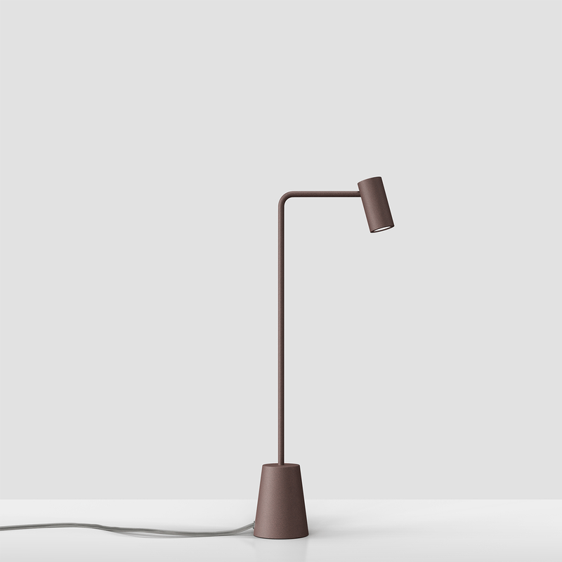 com desenho discreto e módulo led para iluminação pontual, a luminária de mesa less em alumínio possibilita o movimento do facho de luz. é ideal para compor vários tipos de ambiente.