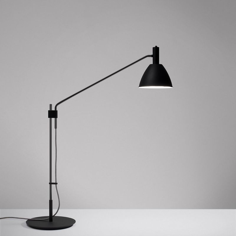 a versão de mesa, mini bauhaus, conta com sistema inteligente de regulagem de altura, sem travas ou parafusos, e cúpula orientável (inclusive lateralmente e até 25° para frente e para cima), permitindo diferentes efeitos de luz. equipada com leds de alta performance, oferece eficiência, durabilidade e uma iluminação confortável para leitura ou ambientes que pedem versatilidade.