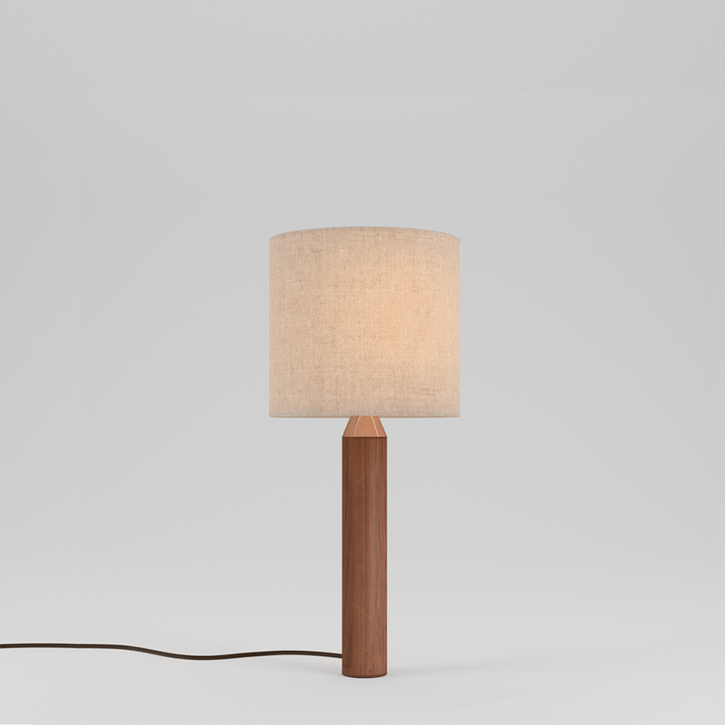 abajur de mesa com linguagem casual e sofisticada, possui base em madeira e cúpula em linho cru, a luminária de mesa raw oferece uma iluminação difusa e agradável, ideal para salas de estar e dormitórios.
