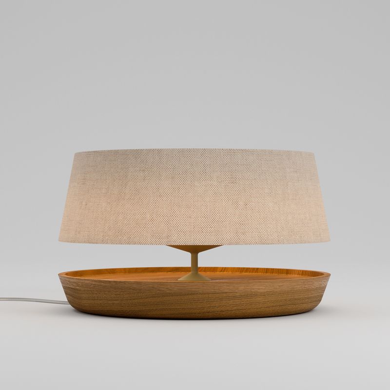 nord é uma luminária de mesa inspirada no design nórdico. sua luz difusa e seus traços precisos trazem leveza e aconchego a ambientes como salas de estar e quartos. com base em madeira brasileira maciça e cúpula em tecido cru, possui sistema dimmer e acabamento em latão ou alumínio na cor cinza areia.