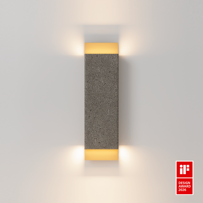 o studio mk27 integra o pensamento arquitetônico à criação de luminárias da linha bloco, enfatizando volumetrias luminosas com sua própria linguagem. utilizando materiais expressivos como concreto (sóbrio, robusto, àspero) e o mármore verde frisado (sofisticado, brilhante, marcado por veios) sobre um plano metálico em latão- este, posicionado estrategicamente de forma a rebater a luz para cima e para baixo. as luminárias de parede desta linha apresentam um contraste entre texturas e proporcionam uma luminosidade suave, quente e difusa, graças ao posicionamento estratégico dos elementos.