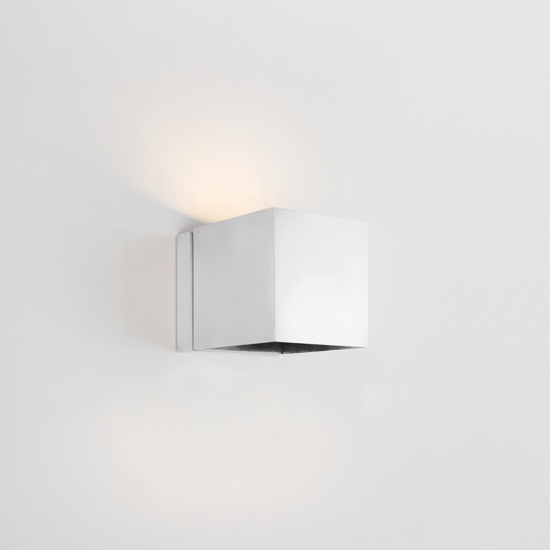 arandela em alumínio, apropriada para áreas internas ou externas cobertas, com um facho, podendo ser utilizado como luz direta ou indireto.
