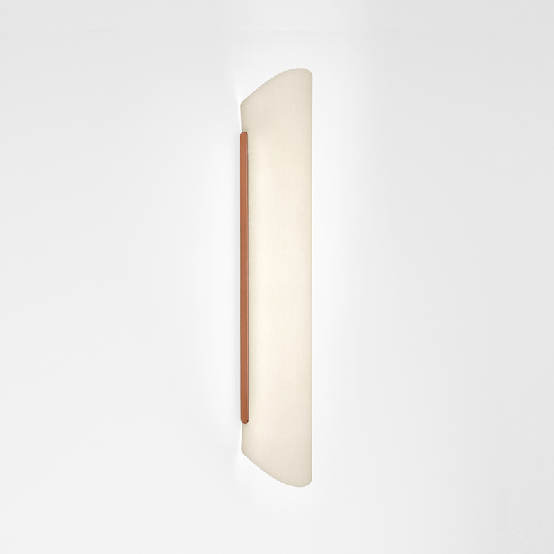 discreta e sofisticada, hit parede possui difusor em linho branco e detalhes em cobre. disponível em três diferentes formatos, esta arandela oferece uma iluminação difusa, criando uma atmosfera leve e agradável, adequada a diversos tipos de ambientes.