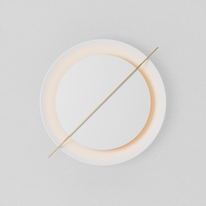 com design minimalista e sofisticado, a arandela tempo combina forma e função em uma peça única. seu sistema de acionamento inovador permite ligar, desligar e dimerizar a luz através do ponteiro central, além da opção de controle pelo interruptor padrão da parede.