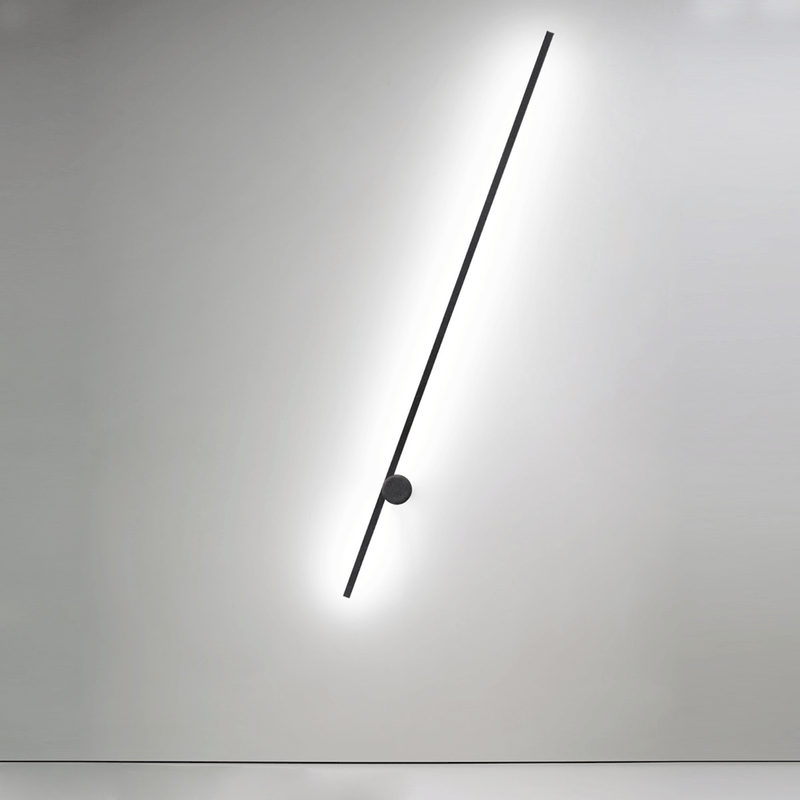 inspirada na arte minimalista, UM resume-se à relação entre dois elementos geométricos básicos. composta por um perfil em led fixo a uma base giratória na parede, permite a interação do usuário e propõe diferentes posições de luz. produzida em alumínio, proporciona uma luz indireta e exerce também a função de elemento decorativo na composição do espaço.