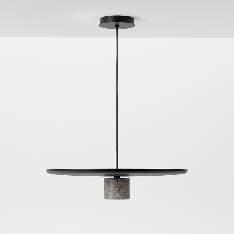 luminária pendente desenvolvida pela designer claudia moreira salles para a lumini, se materializa no contraste entre seus materiais e suas formas – a densidade do concreto de sua base opõe-se a leveza do alumínio de sua bandeja. com uma iluminação indireta e direta com grande eficiência energética, esta luminária é ideal aos mais diversos tipos de ambientes.