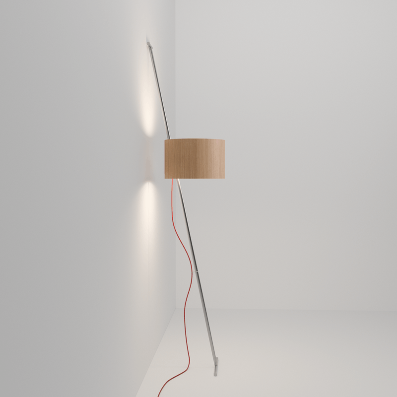 lift nasceu da ideia de criar uma luminária de piso com uma fixação inusitada, sem as habituais bases estruturais de grande dimensão. o resultado é uma inovadora haste de inox que se apóia na parede e permite o livre movimento da cúpula, aumentando sua gama de aplicações. assim como várias outras peças de fernando prado, lift é conhecida e admirada pela interação que propõe ao usuário.