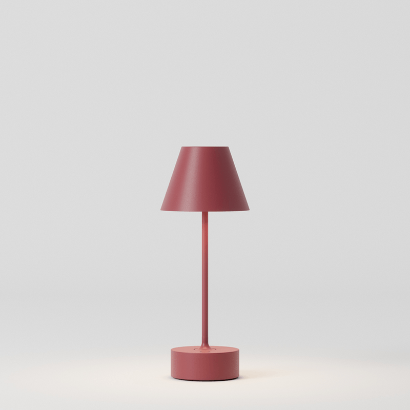 luminária portátil de mesa em alumínio pintado, esta peça é uma releitura descontraída dos tradicionais abajures. com design limpo e luz difusa e agradável, adapta-se a diversos ambientes. possui uma bateria recarregável de alta autonomia e permite o controle da intensidade da luz com um dimmer de toque de três níveis. oferece também controle de três temperaturas de cor diferentes (1800k - 2700k).