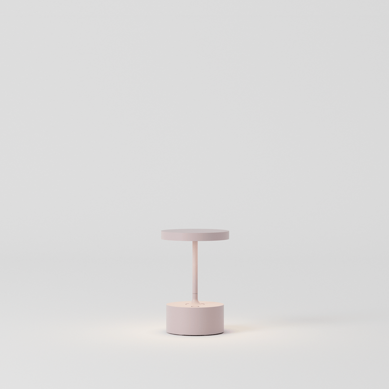 luminária portátil de mesa em alumínio pintado, com desenho discreto e minimalista, e luz direta e agradável, compõe diversos ambientes. em mesas de jantar, sua cúpula produz mínima interferência visual. possui bateria recarregável de alta autonomia e permite o controle de intensidade de luz e três níveis de temperatura de cor diferentes (1800k - 2700k).