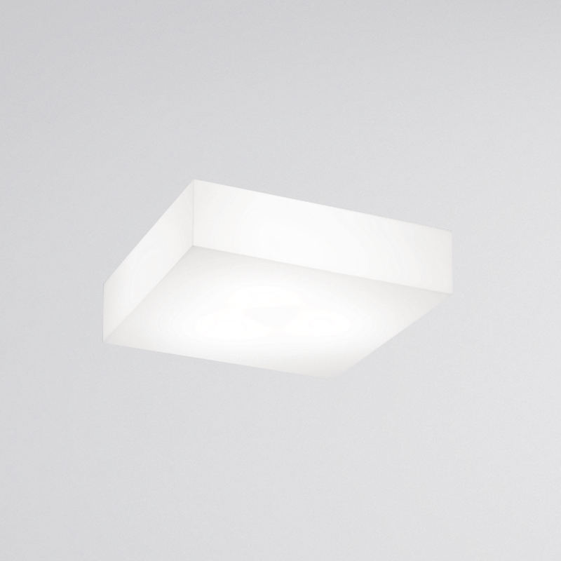 luminária aplicada quadrada com tecnologia led. em acrílico translúcido com base em alumínio na cor branca.