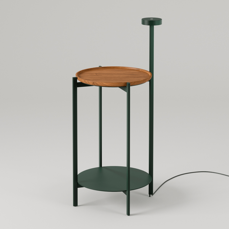 inspirada no design nórdico, a mesa possui estrutura em alumínio e tampo em madeira maciça, possibilitando seu uso como uma prática e versátil bandeja. com luminária acoplada, a mesa bar nord propõe uma luz suave e traz aconchego a ambientes como salas de estar e quartos.